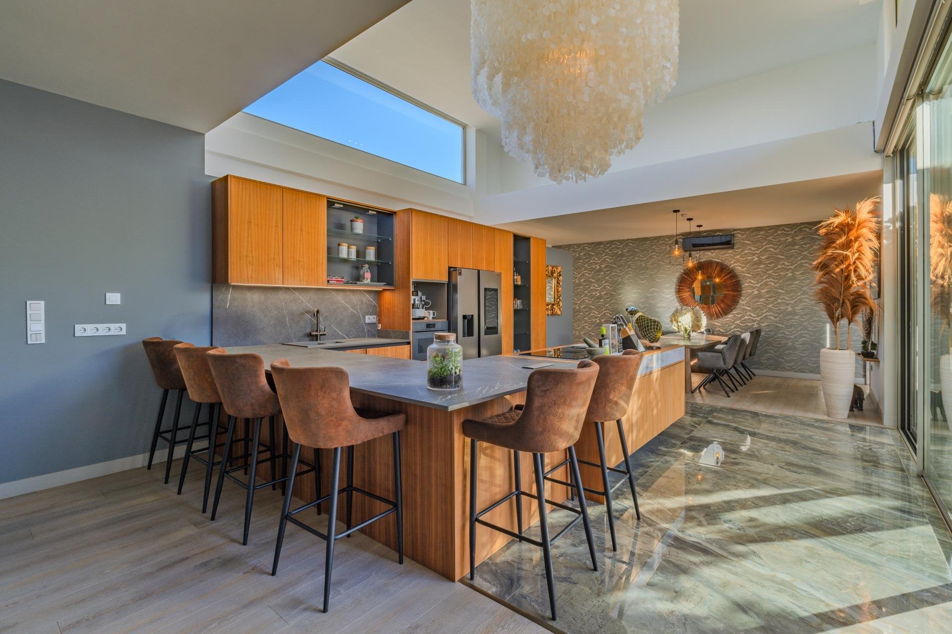 Villa éco-luxueuse exceptionnelle à Benijófar — Un chef-d'œuvre de design, de bien-être et de durabilité Située dans le quartier résidentiel très prisé de Benijófar, cette villa remarquable est l'une des résidences écologiques les plus impressionnantes de la Costa Blanca. Conçue et construite avec une attention sans compromis pour la qualité, le confort et l'efficacité, la propriété allie des matériaux de classe mondiale, une technologie de pointe et une architecture contemporaine élégante pour offrir une expérience de vie véritablement haut de gamme. Plus qu'une villa de luxe, c'est un sanctuaire intelligemment conçu pour une vie saine, le bien-être et une intimité absolue. 🌿 Une véritable maison écologique construite selon les normes les plus élevées Chaque élément de cette villa a été conçu dans un souci de durabilité et de performance : La propriété est entièrement alimentée par l'énergie solaire, ce qui réduit considérablement les coûts de fonctionnement tout en garantissant un mode de vie respectueux de l'environnement. Un système de filtration et de purification de pointe fournit de l'air et de l'eau propres et sains dans toute la maison, améliorant ainsi le confort et le bien-être. Des matériaux, une isolation et des méthodes de construction de première qualité garantissent une durabilité à long terme, une réduction du bruit et une efficacité énergétique exceptionnelle. Les systèmes de climatisation offrent un confort optimal tout au long de l'année, rendant la maison efficace, silencieuse et exceptionnellement agréable à vivre. Il s'agit d'une maison construite pour l'avenir, respectueuse de l'environnement, nécessitant peu d'entretien et conçue pour offrir des performances exceptionnelles. 🏡 Intérieurs spacieux, quartiers séparés et espaces professionnels polyvalents La villa offre un agencement spacieux et flexible, parfaitement adapté à une vie luxueuse, aux réceptions et même à la gestion d'une entreprise à domicile. Parmi les points forts, citons : De grands espaces de vie élégamment conçus, baignés de lumière naturelle et dotés de finitions haut de gamme. Un appartement d'amis entièrement indépendant / des quartiers séparés, idéaux pour les visiteurs, la famille élargie, le personnel ou la location privée. Un bureau dédié, vous permettant de travailler en toute intimité et de manière professionnelle depuis votre domicile. Une salle de pédicure / podologie sur mesure, parfaite pour gérer un petit service de bien-être, pour un usage personnel ou pour être transformée en un autre espace de soins ou de beauté. Plusieurs chambres et salles de bains magnifiquement finies offrant confort, intimité et style raffiné. Que ce soit comme résidence de luxe, comme combinaison maison-entreprise ou comme retraite bien-être, la maison s'adapte sans effort. 💎 Bien-être inégalé et équipements de style resort La villa a été conçue pour offrir une expérience de bien-être inégalée : Une piscine privée chauffée, idéale pour nager et se détendre toute l'année. Jacuzzis, bains à remous et équipements de qualité spa, y compris une douche à vapeur pour une régénération complète. De magnifiques espaces extérieurs paysagers avec des terrasses ensoleillées, des sièges ombragés et des espaces élégants pour se divertir et profiter du climat méditerranéen. Tout est conçu pour améliorer votre style de vie quotidien : confort, détente, intimité et bien-être en parfaite harmonie. ✨ Une opportunité rare dans l'une des zones les plus prisées de la Costa Blanca Cette villa allie sans effort un design durable, une construction haut de gamme, des équipements de luxe et des espaces de vie polyvalents. Sa combinaison d'efficacité énergétique solaire, d'équipements de bien-être, de chambres d'amis indépendantes et de pièces adaptées aux affaires en fait une propriété vraiment unique, idéale pour ceux qui recherchent une résidence offrant bien plus qu'un simple lieu de vie. Avec son emplacement privilégié, ses écosystèmes avancé